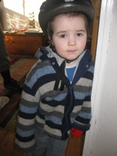 I’ve been taking Tomás to nursery on the bike for a number of months now and Liz has finally managed to get a picture & a video of the dynamic duo.